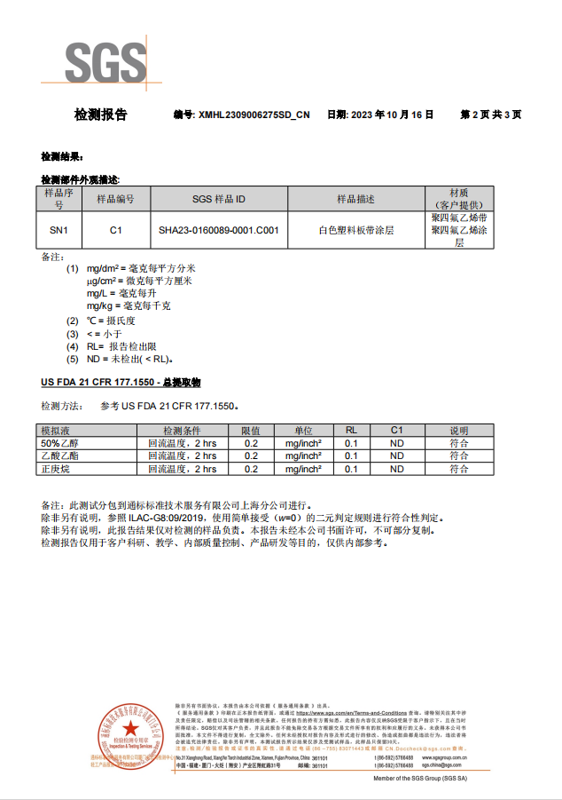 Aidmer78-052BS Barium Sulfate Filled PTFE Sheet was Approval FDA Certificate by SGS